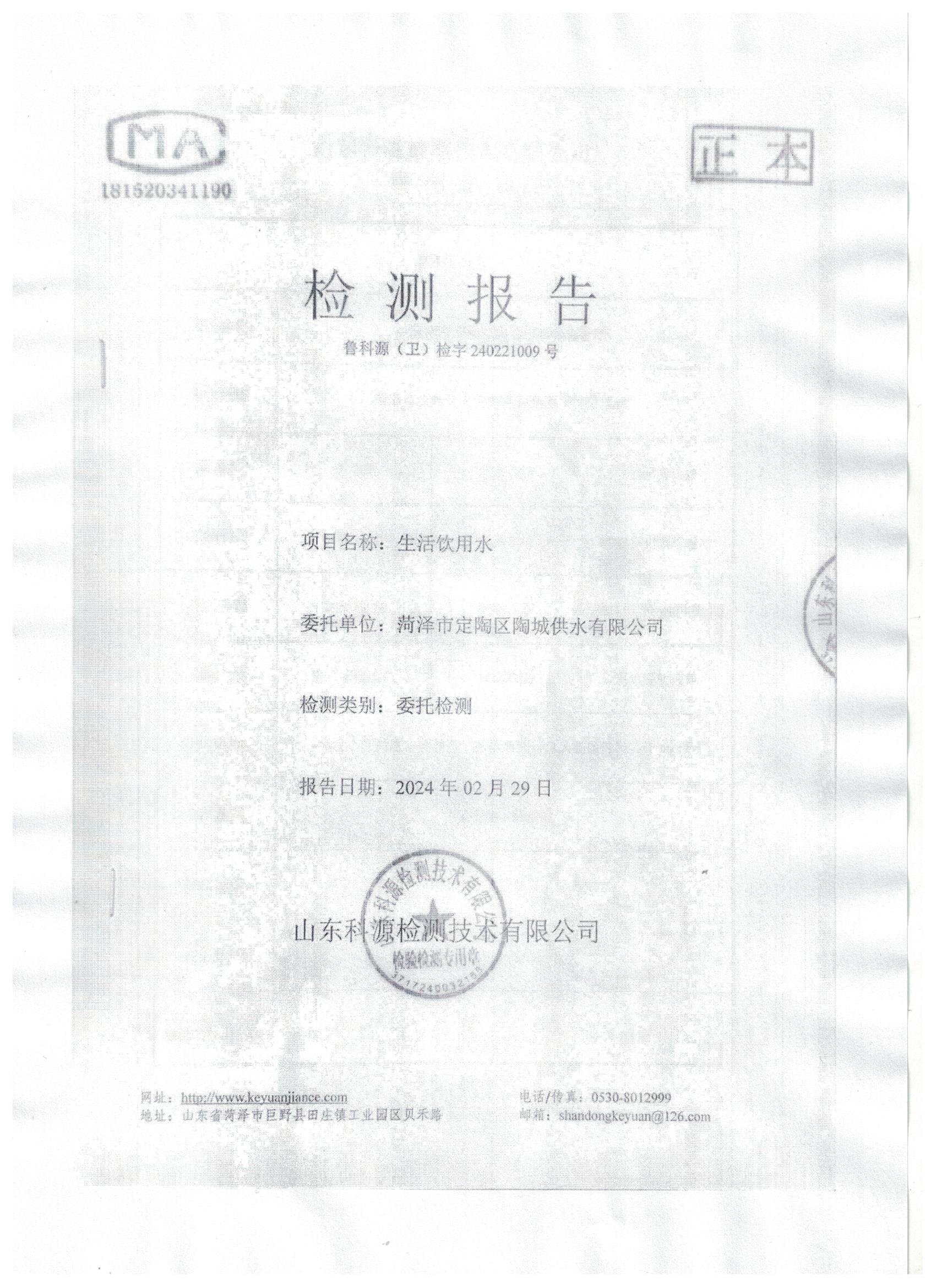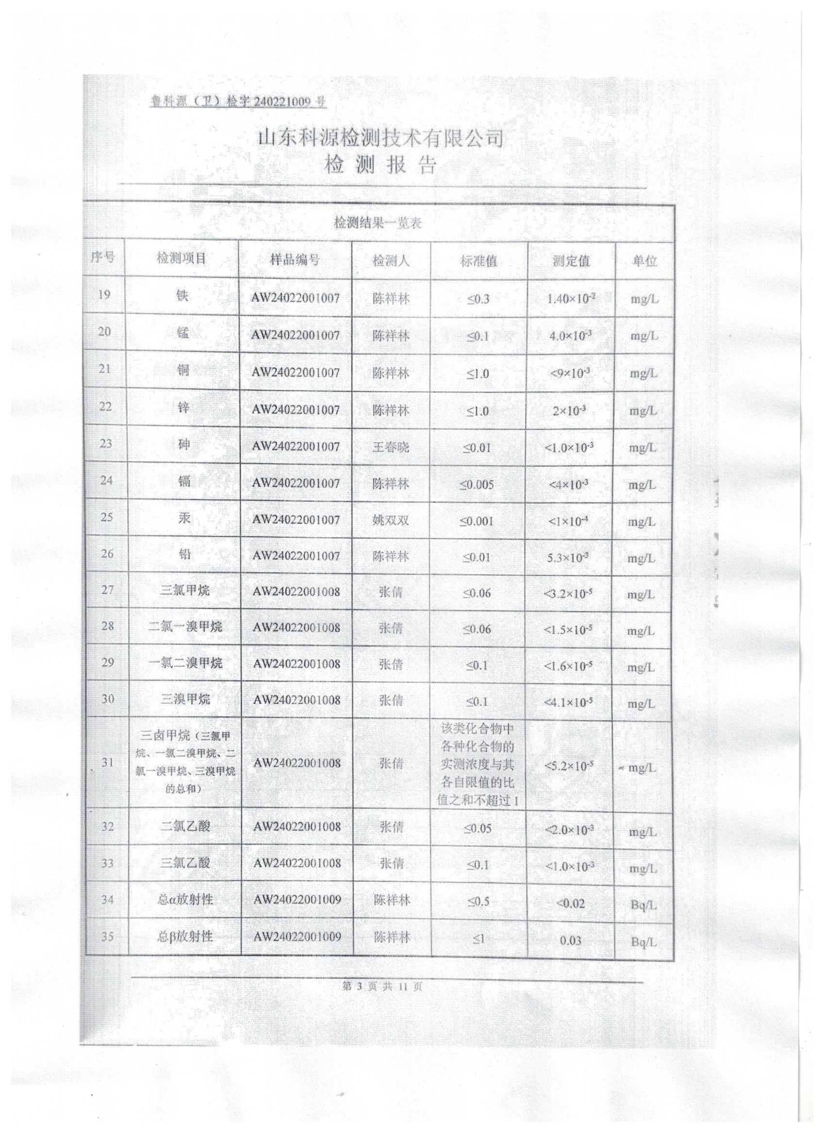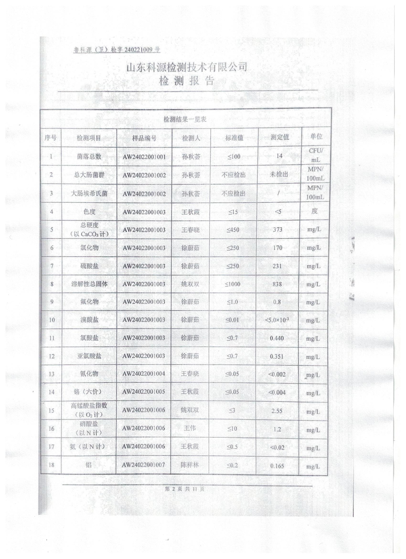 2024年2月水质检测报告