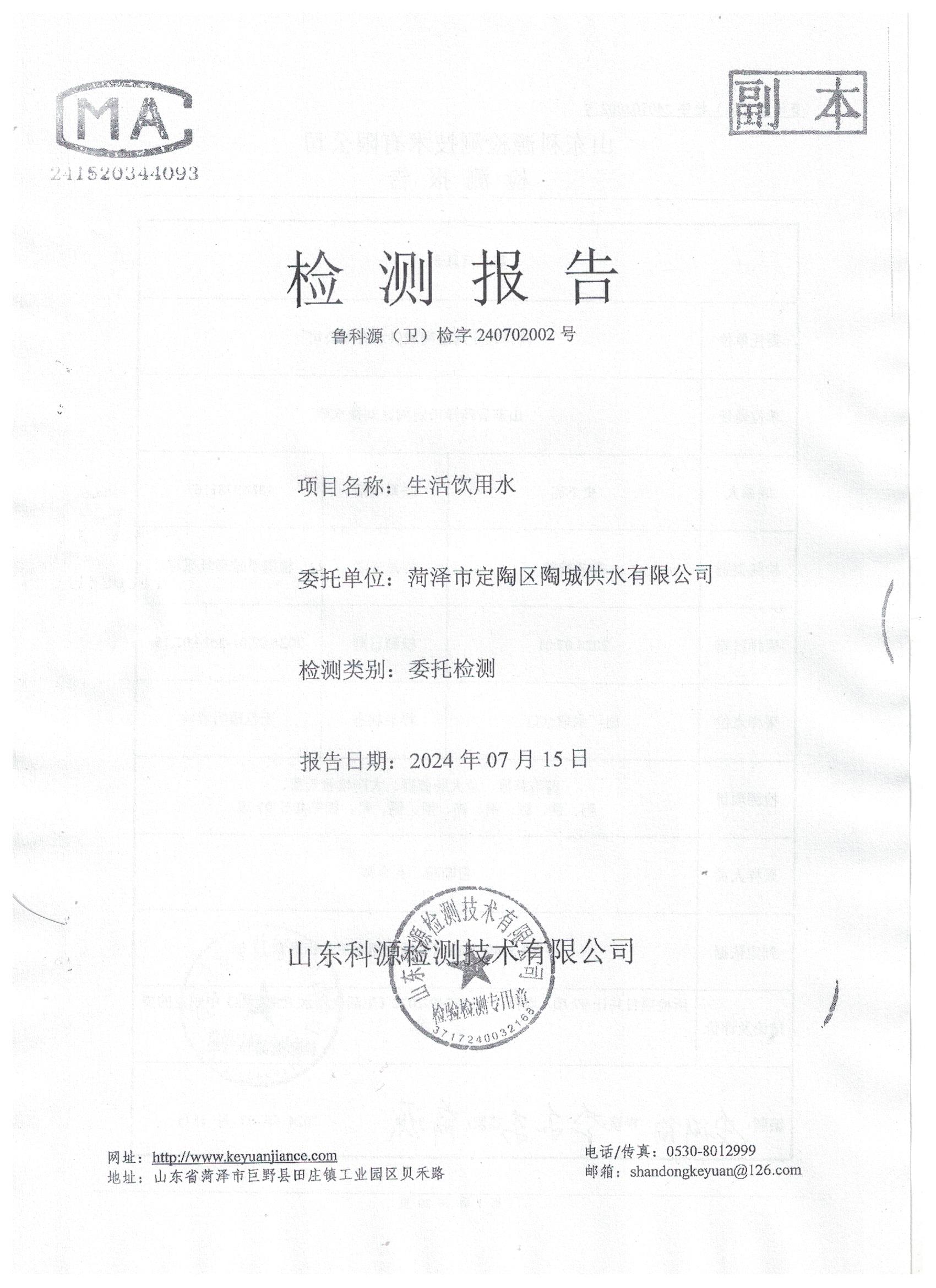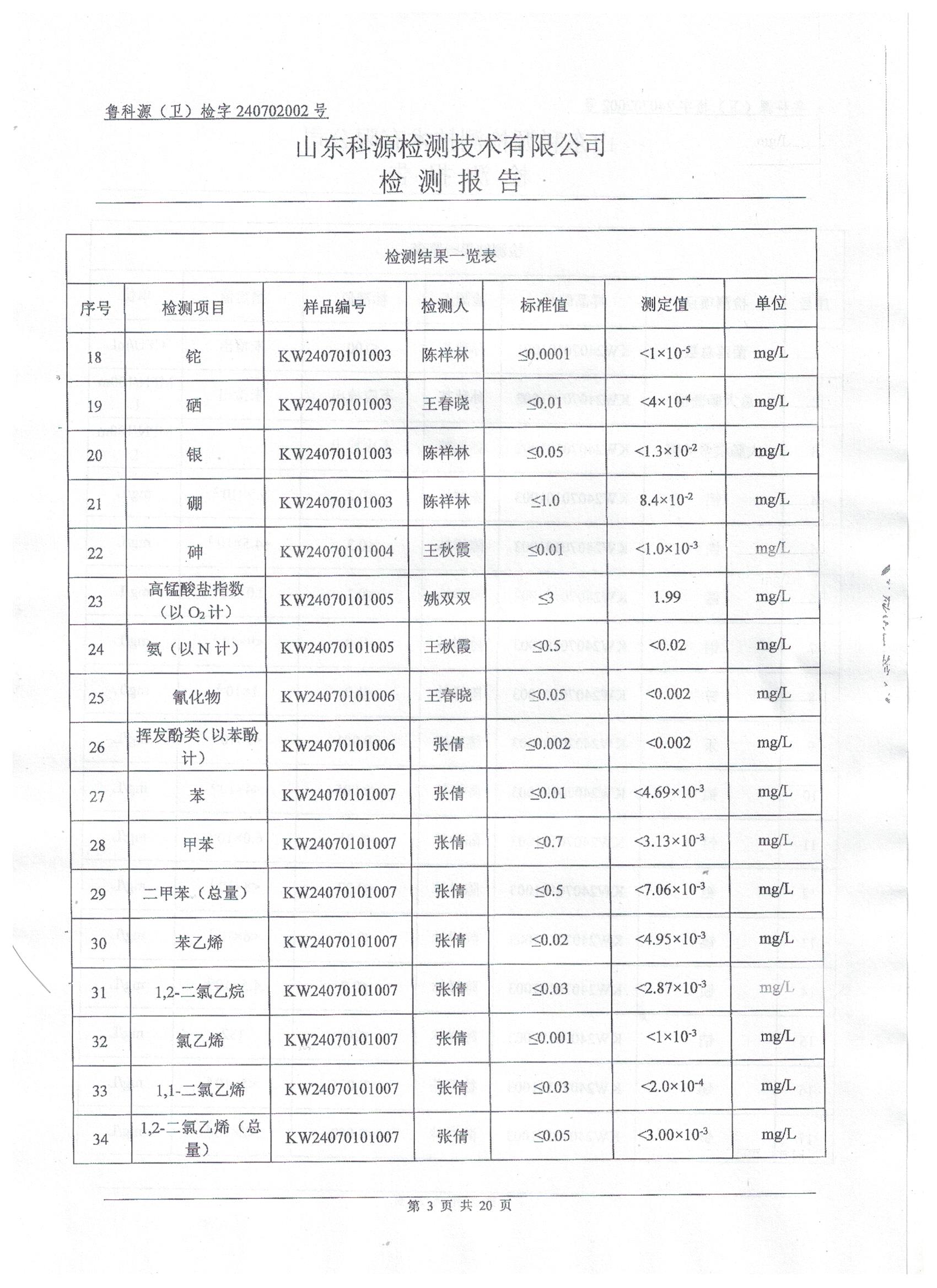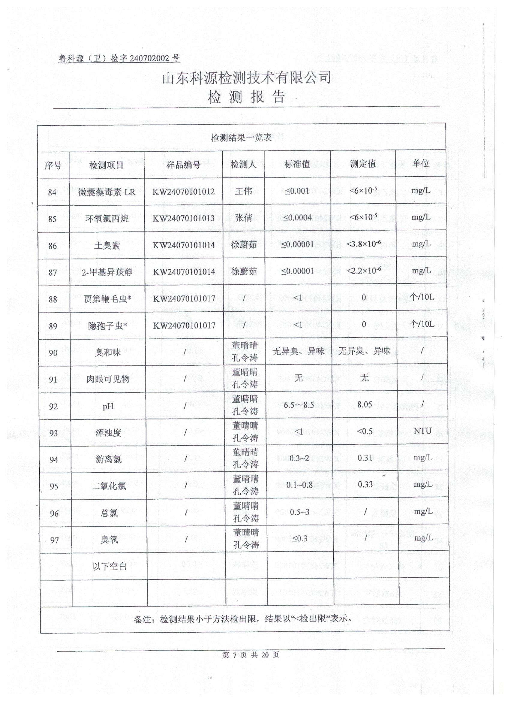 2024年7月水质检测报告