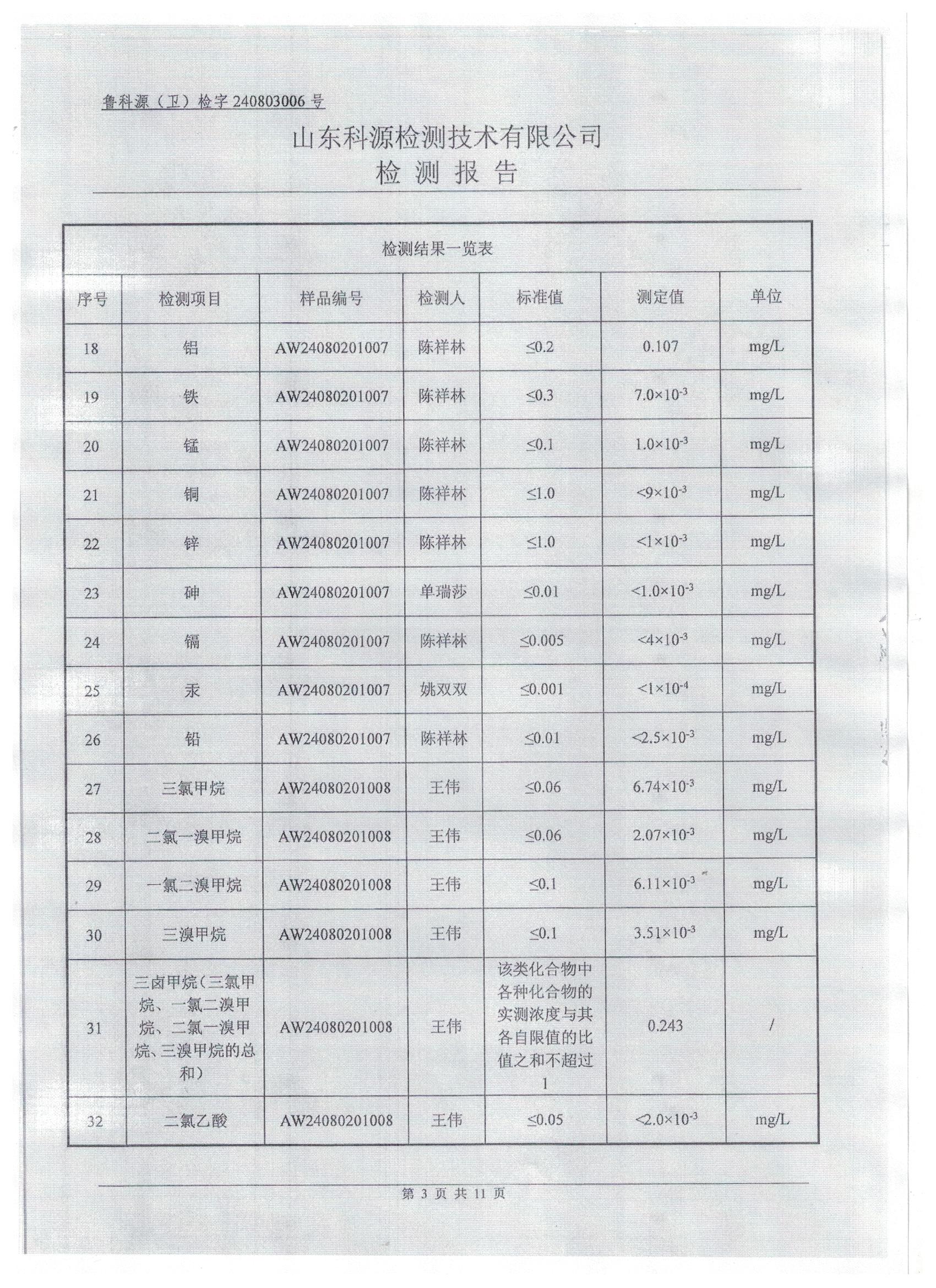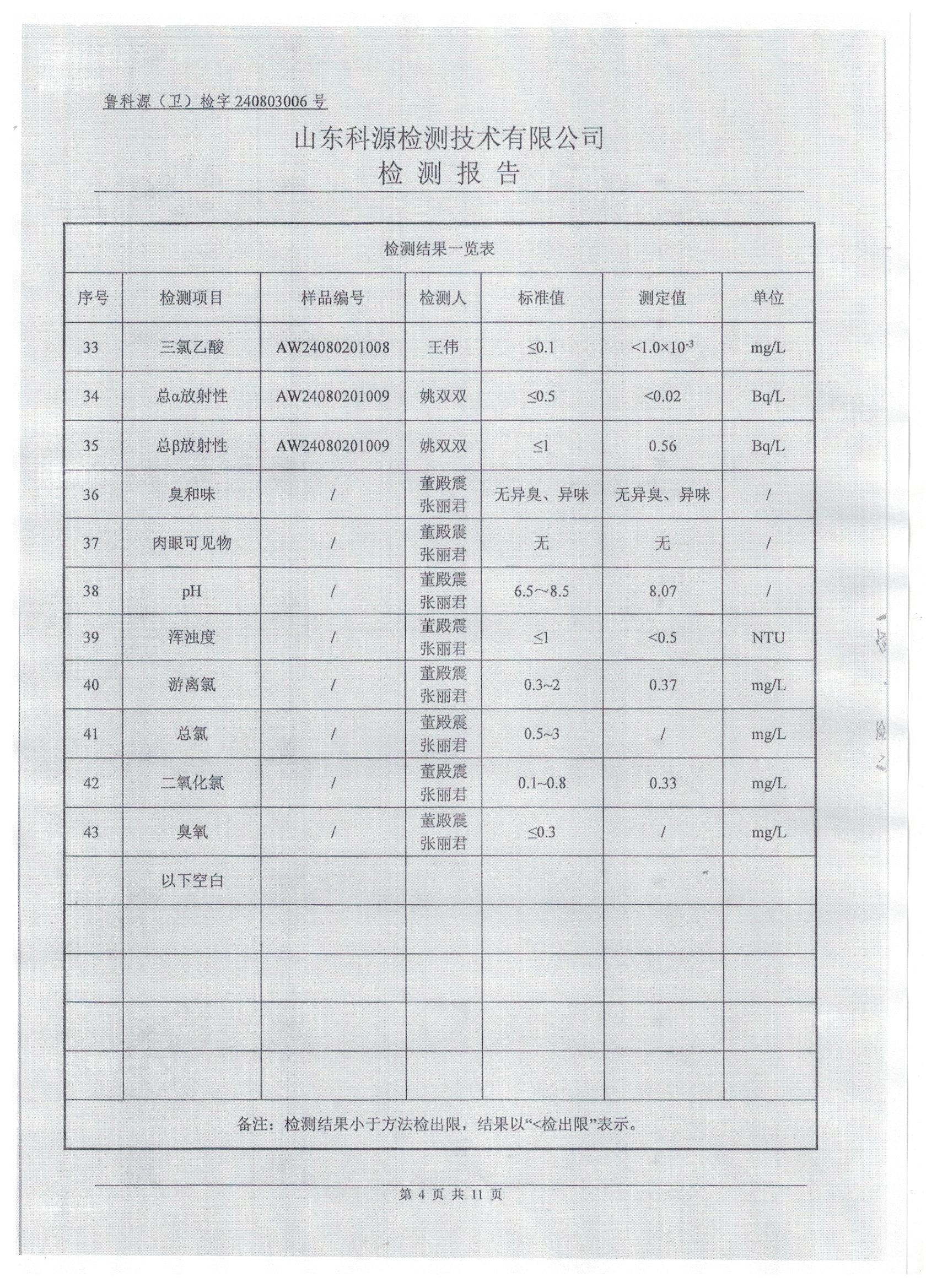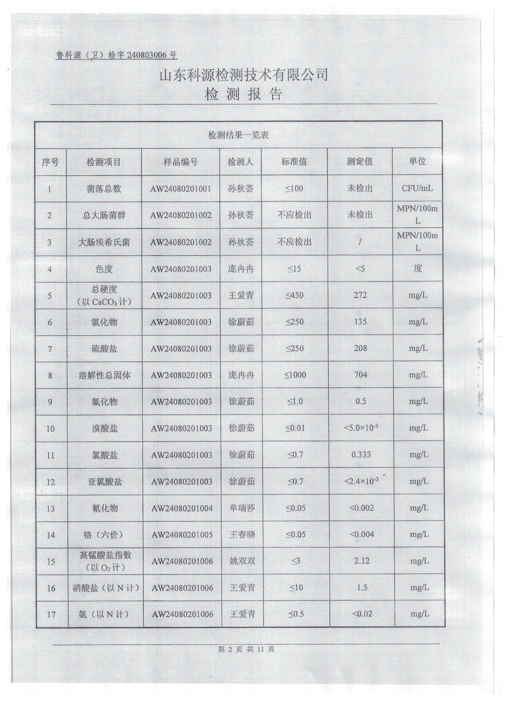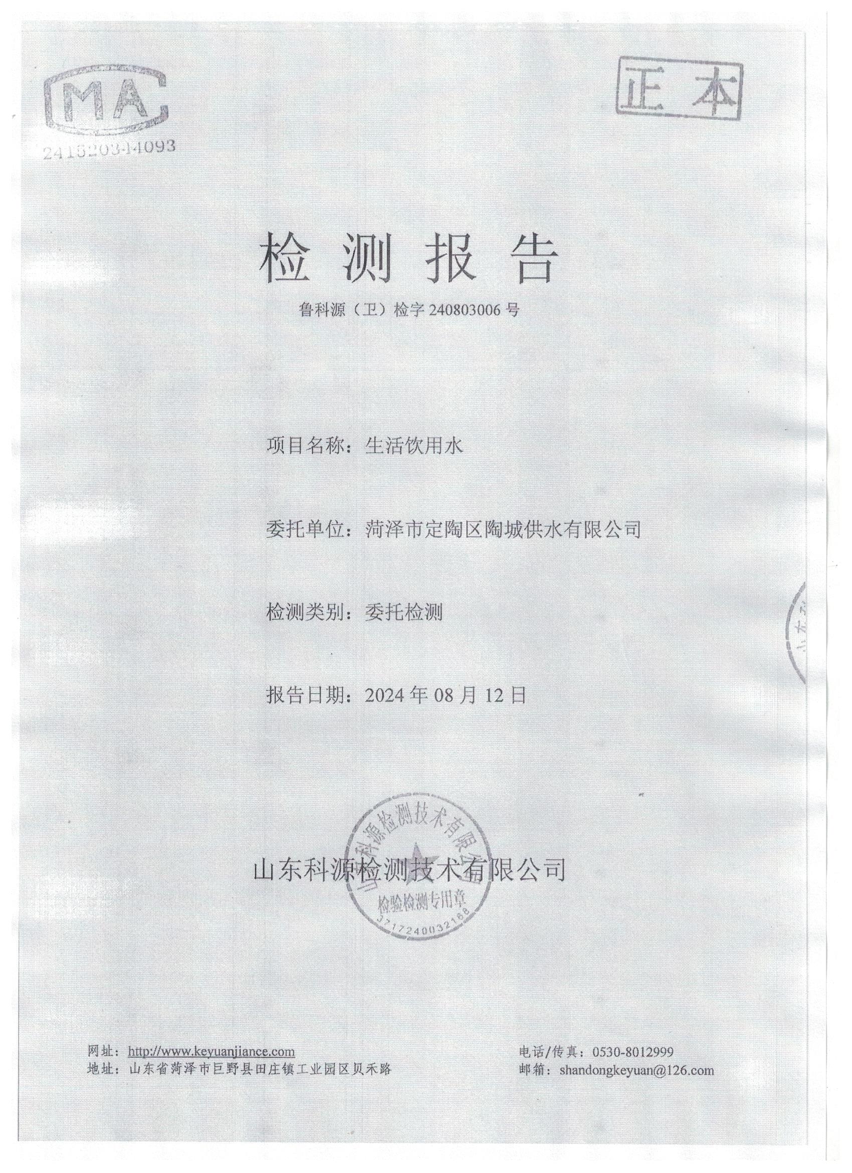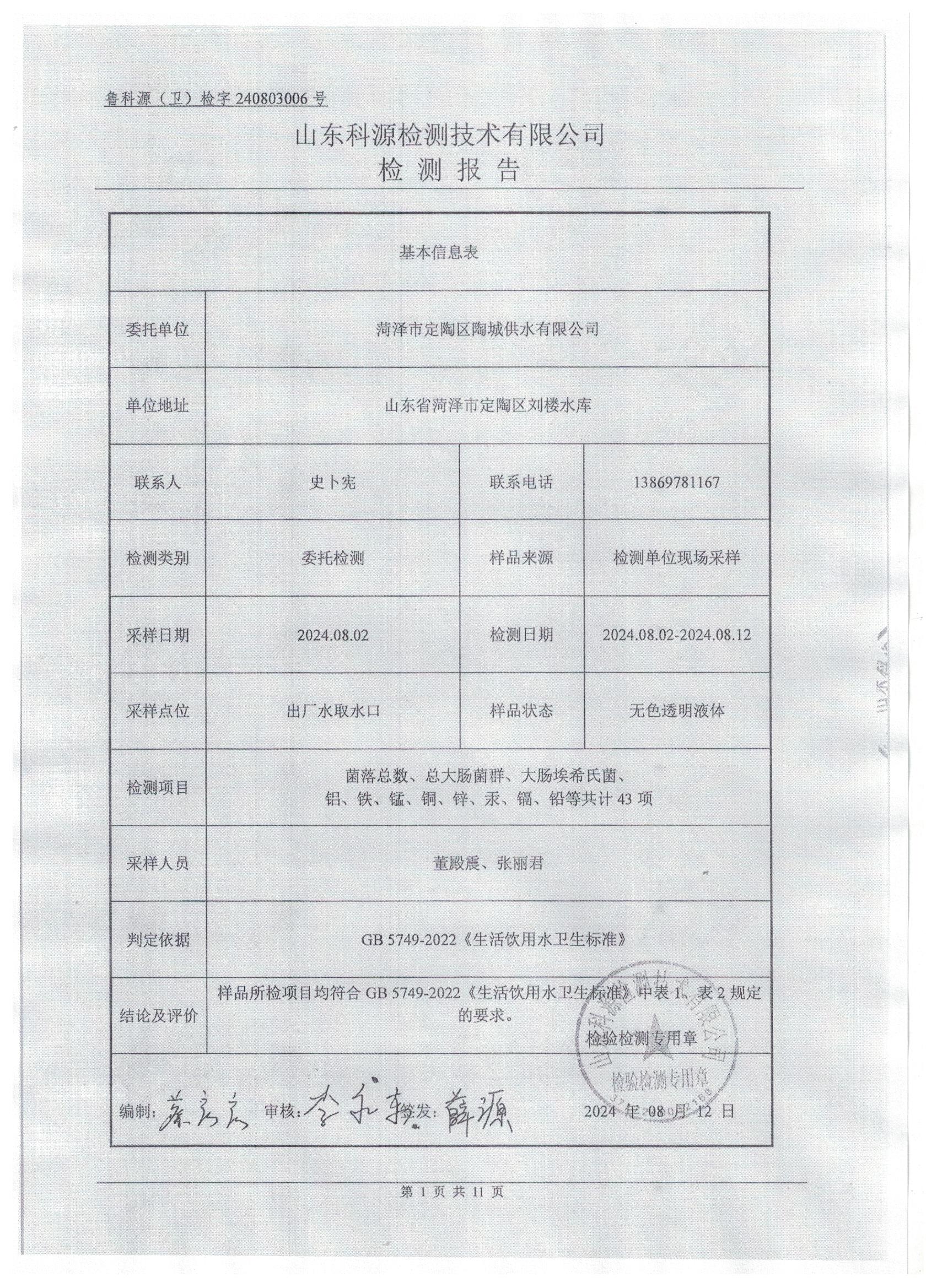 2024年8月水质检测报告